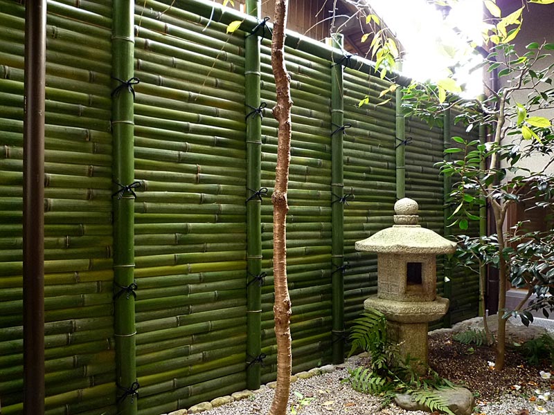 使用する竹は、青竹、晒竹、錆竹など、用途や景観に応じて選ぶことができます。年月とともに竹が変色し、庭の雰囲気に馴染んでいく様子もまた、自然素材ならではの美しさです。