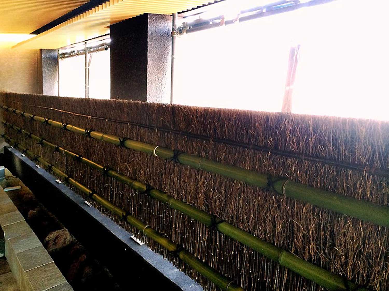 半割り竹で押さえることで構造的に安定し、見た目にもきりっと引き締まった美しい仕上がりとなります。