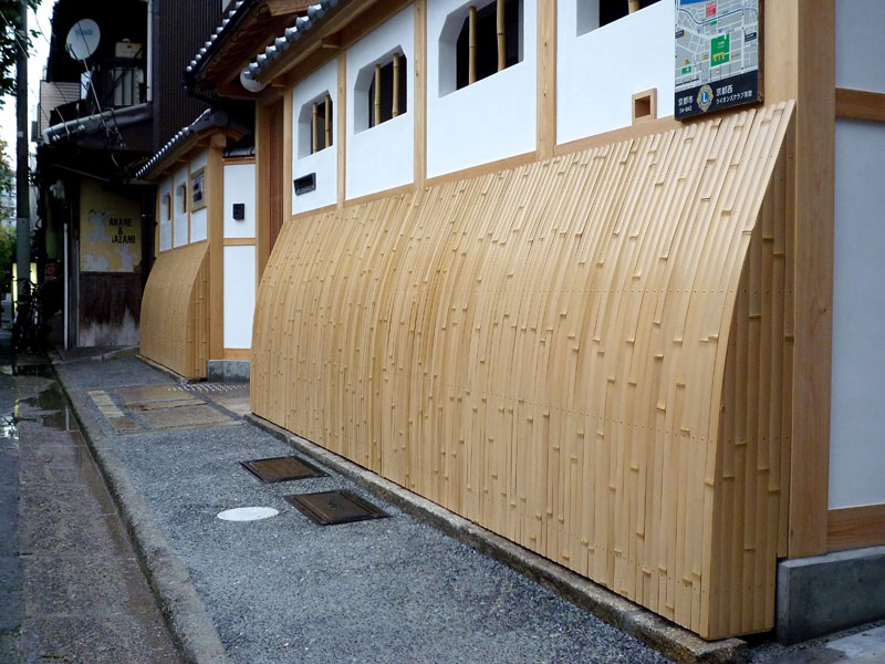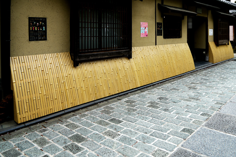 構造面では、節の整った青竹や厳選された木材を使い、縦横に丁寧に組み合わせた格子状のデザインが一般的です。この格子は単に壁を守るだけでなく、通気性を確保することで壁内部の湿気を逃がし、建物の耐久性を高める役割も果たしています。設置される場所は主に建物の基礎付近で町家の落ち着いた和の景観を引き立てます。