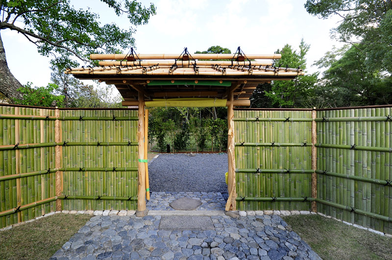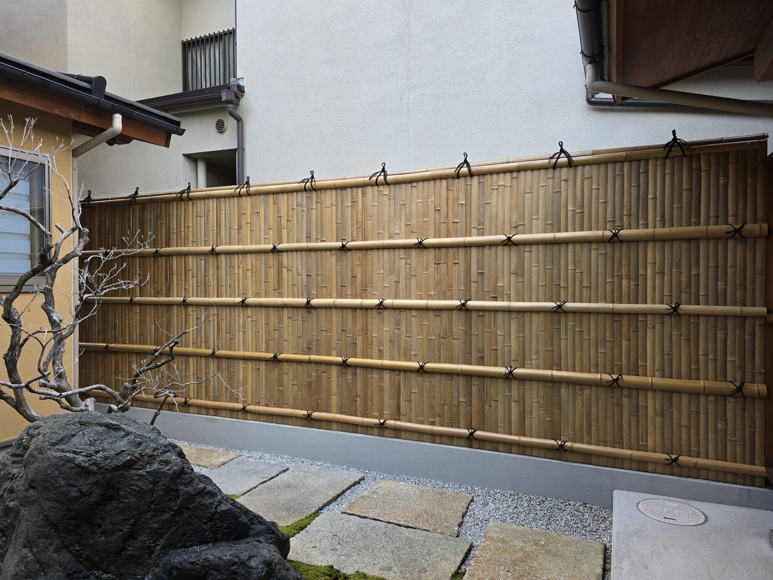 現代においても、建仁寺垣は和風住宅や旅館、茶室のまわりなどで取り入れられ、竹垣の中でも格式高い意匠として多くの支持を得ています。年月を経るごとに竹の色が変化し、景観により深みを加えていくのも大きな魅力のひとつです。