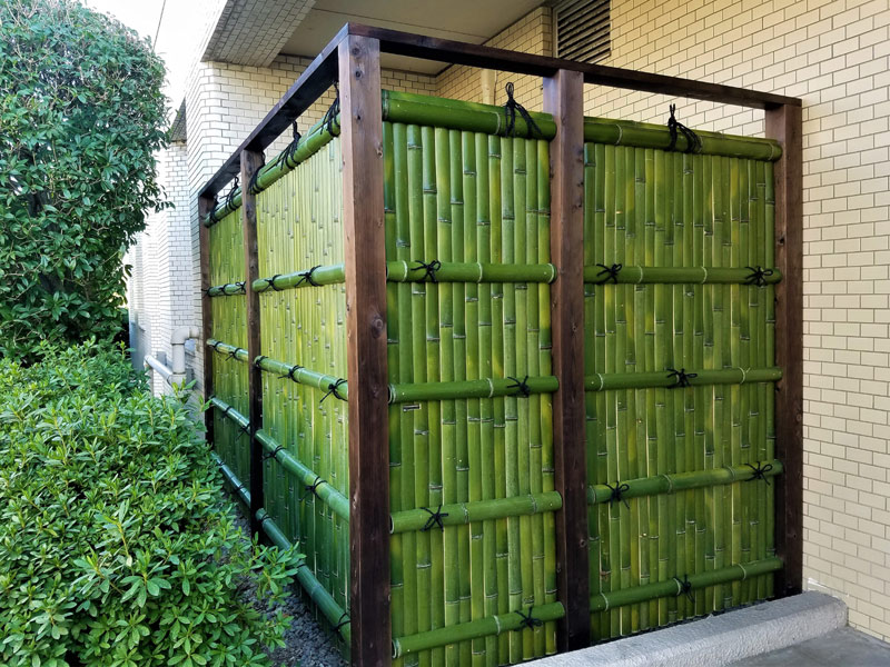 一見シンプルながら、しっかりと視線を遮る目隠し効果を持ちつつ、風や光をやわらかく通す絶妙なバランスが特徴です。竹の自然な表情と、規則的に組まれた構成の中に、整然とした美しさが感じられます。