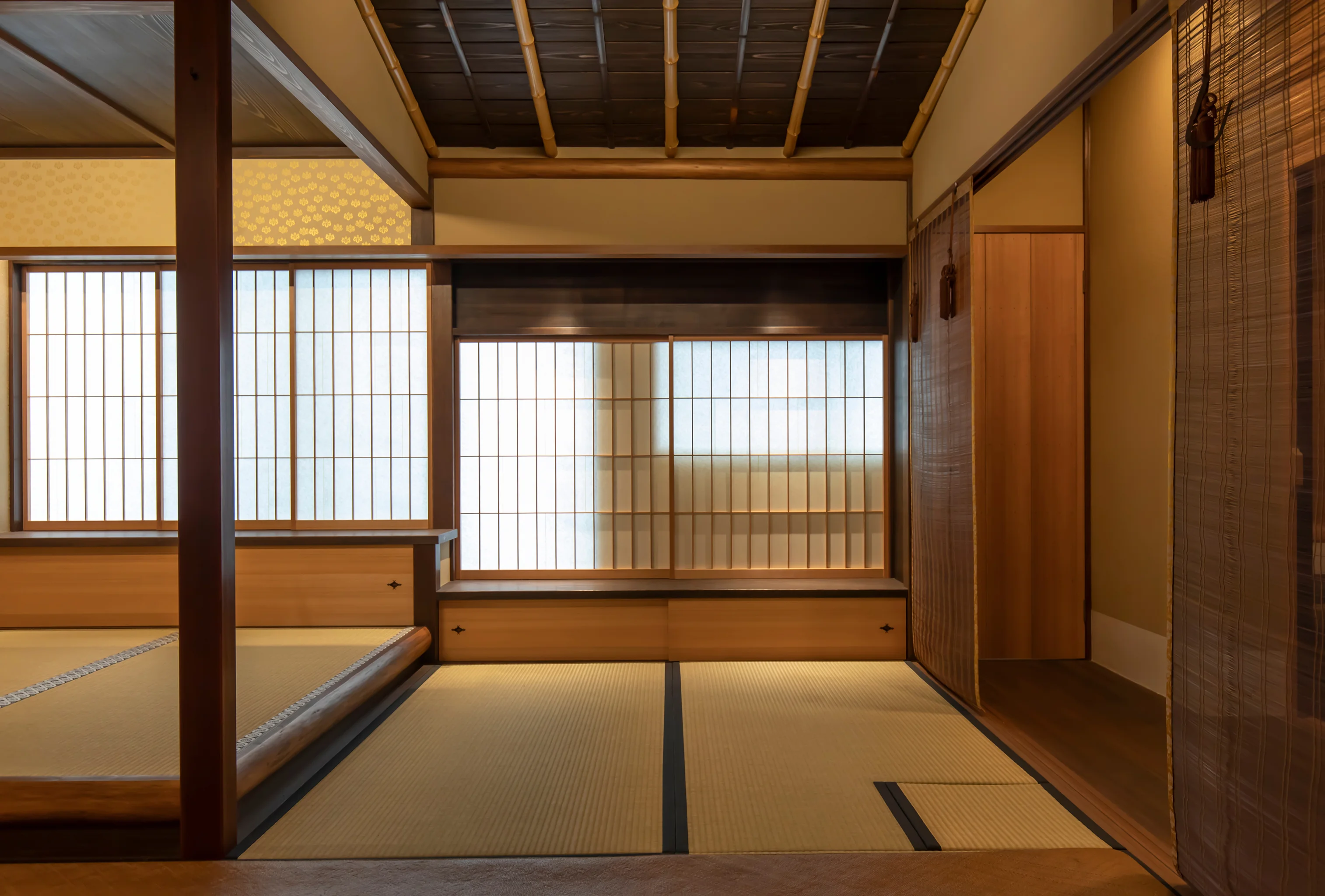 近年、京銘竹は現代建築やインテリアデザインの分野でその美しさが見直されています。「白竹」を配した空間は無機質な現代建築に温かみを与え、上品な光沢で照明効果を高める役割も果たします。