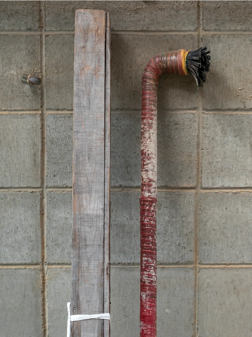 模様は、すべて職人の手作業によって生み出されます。まず模様が美しく映えるような質の良い竹を選び、その表面に硫酸を専用の刷毛で塗布します。ほんの数秒のうちに竹の表皮が反応し、にじみやムラをともなった筋模様が現れます。