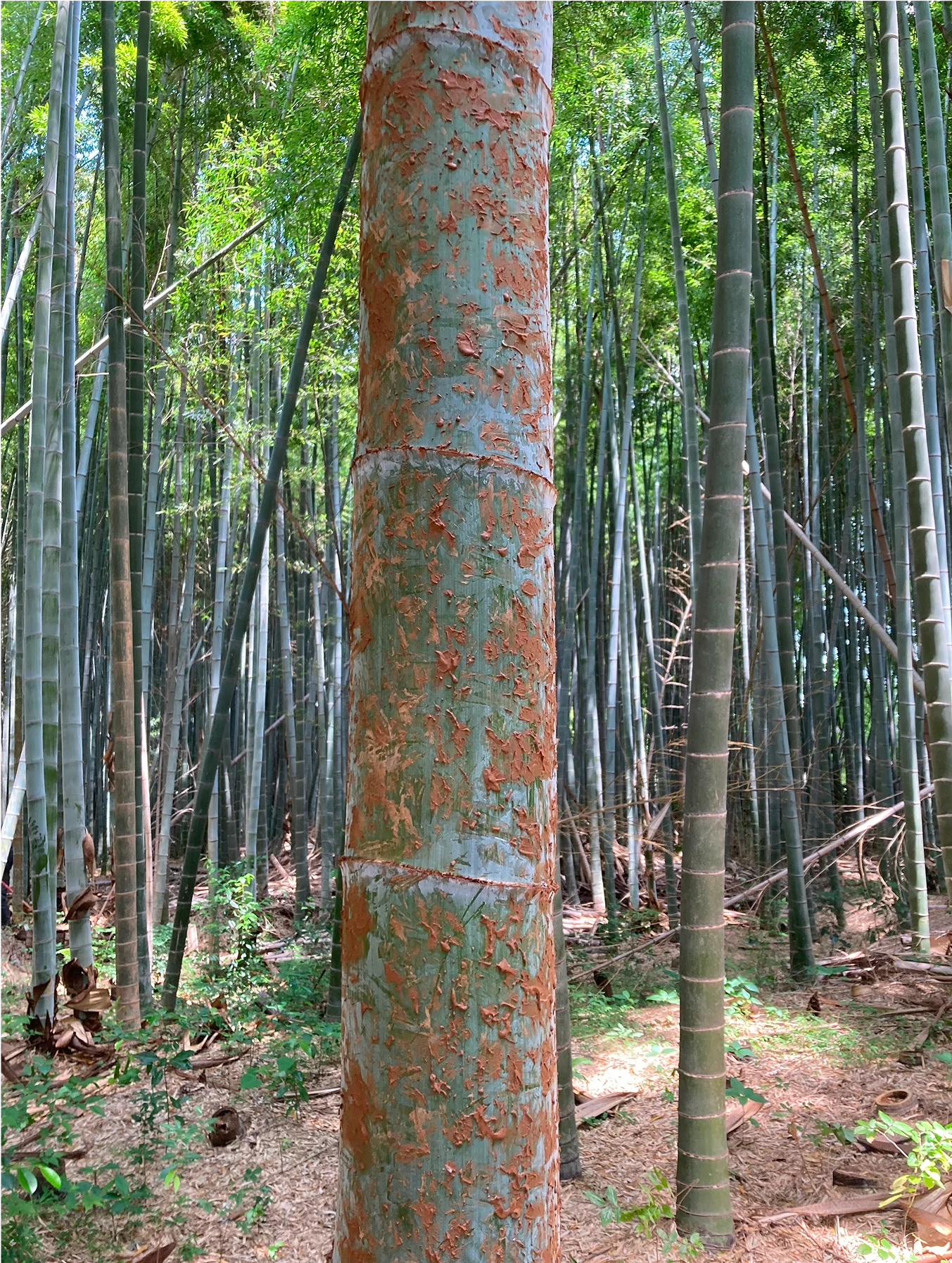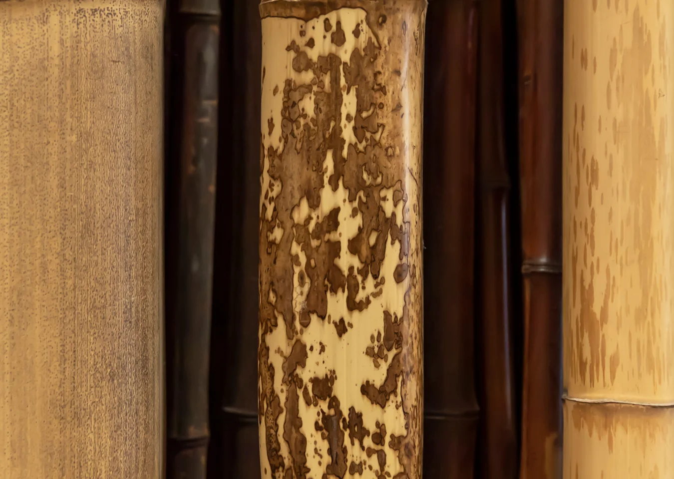 図面竹は、一本ごとに模様の出方や色味が異なり、それぞれに個性があり、自然素材の持つ風合いを大切にしながら、わずかな人の手を加えることで生まれる「余白」の美しさにあります。模様の濃淡、節の位置、にじみ方などが一本一本違うからこそ、空間に使う際は設計者や職人の「選ぶ目」が問われます。どのようなリズムを持たせたいか、どの程度の存在感を求めるか。図面竹の美しさを引き出すには、空間への繊細な感性が必要です。