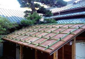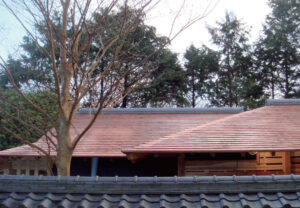 柿葺きは、杉や槇などの柿板材を使って屋根を葺くことです。