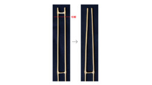 1本の丸竹の両サイドを鋸で水平に切り落とす加工です。