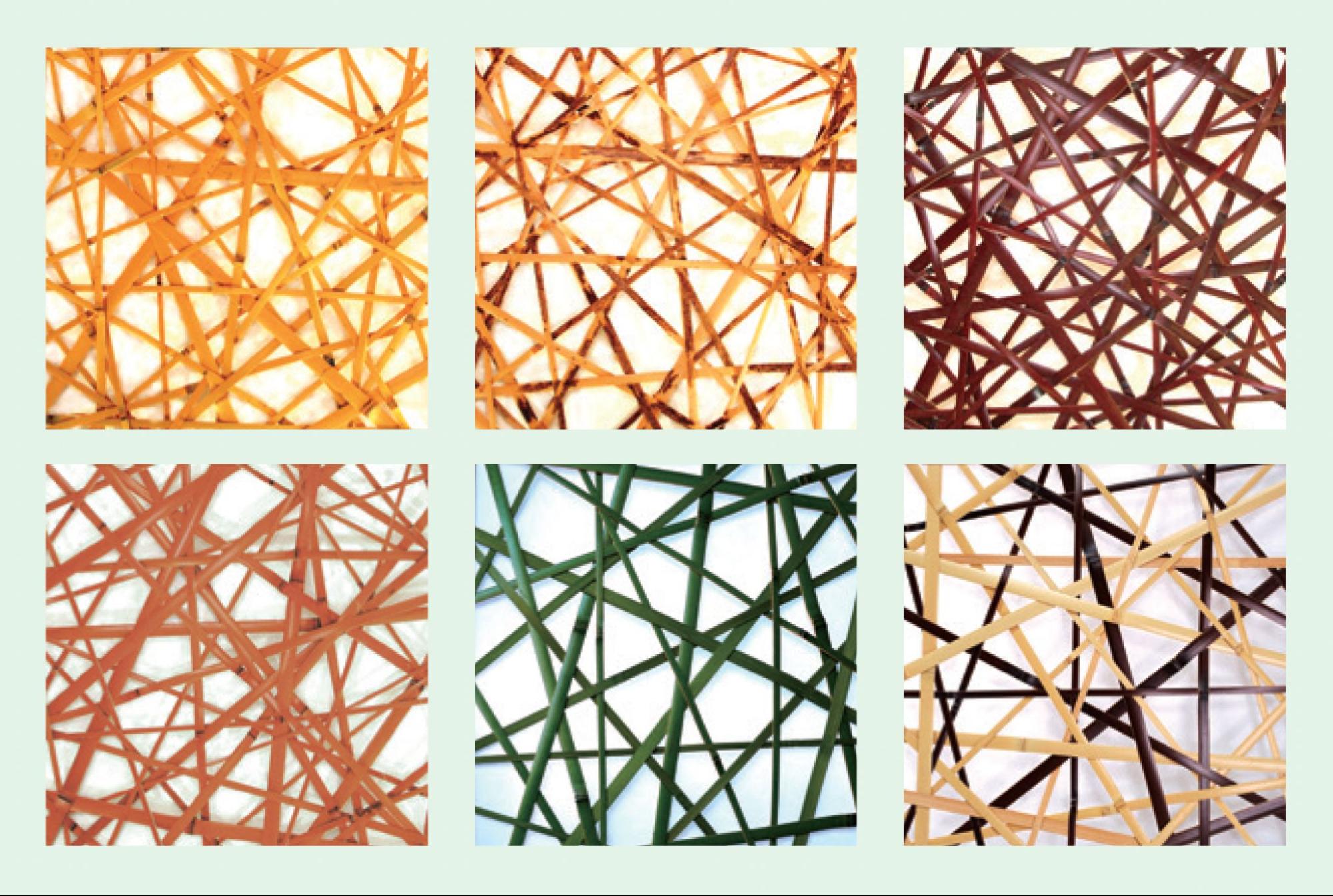 そめたけかわはだむつめあみ 染竹皮ハダ六ツ目編