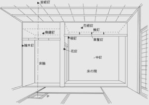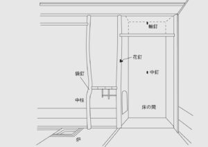 床の間正面壁に打つ中釘(無双釘)