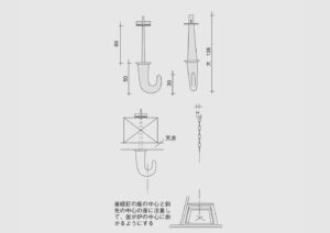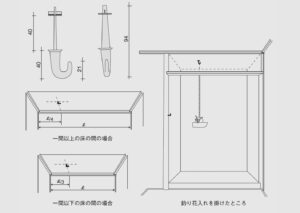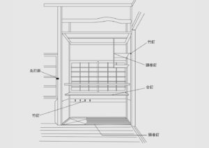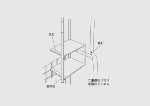 小間の中柱と釣棚に打つ釘