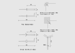 てつまきがしらくぎ にじりぐちじょうげかまちどめ 鉄巻頭釘 にじり口上下框止め